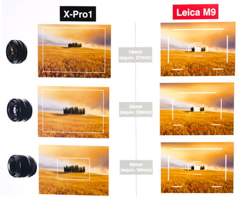 Gracias a esto si comparamos lo que se ve entre la X-Pro1 y la Leica M9, el encuadre es mas intuitivo ya que magnifica la zona encuadrada y no se limita a modificar las guías de la cámara manteniendo la imagen tal cual como hace la Leica M9.