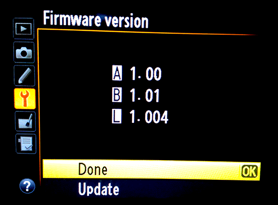 Nikon D4 actualización del firmware 1.01 :